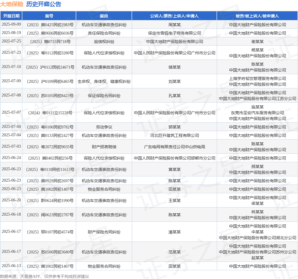 本站消息股票配资业务,根据天眼查APP显示,近日公布了一则中国大地财产保险股份有限公司作为被告/被上诉人的开庭公告股票配资业务,详细内容如下: